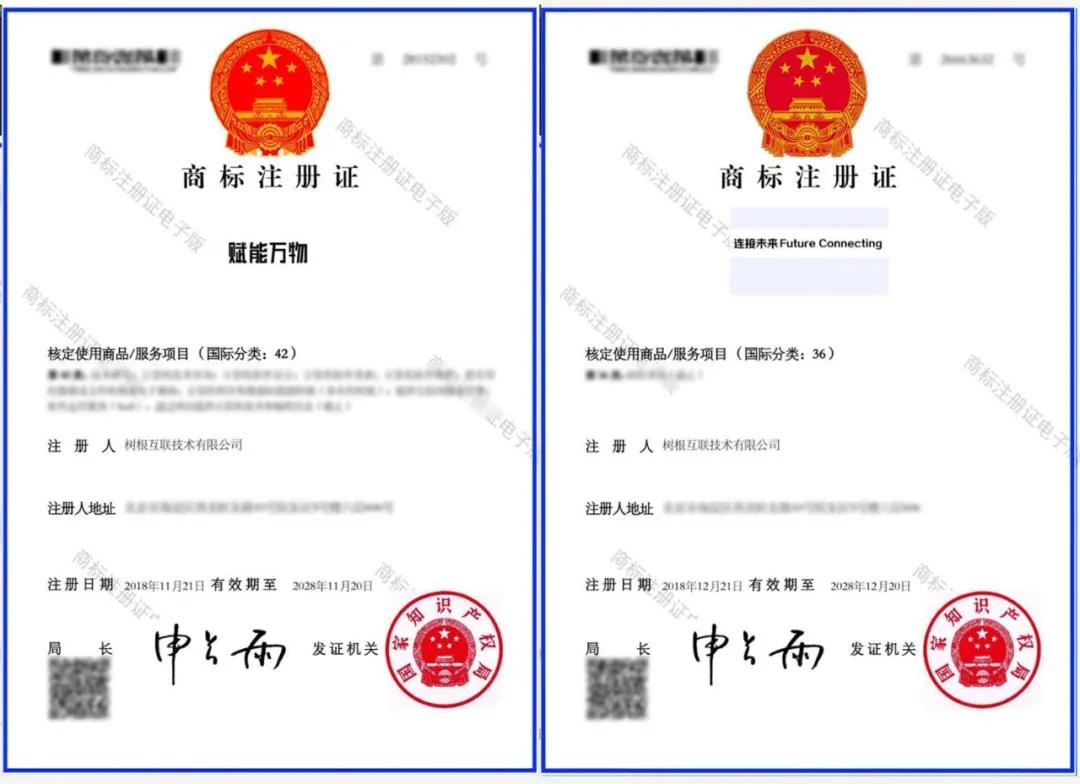 樹根科技對"賦能萬物,連接未來"有商標專用權(quán)