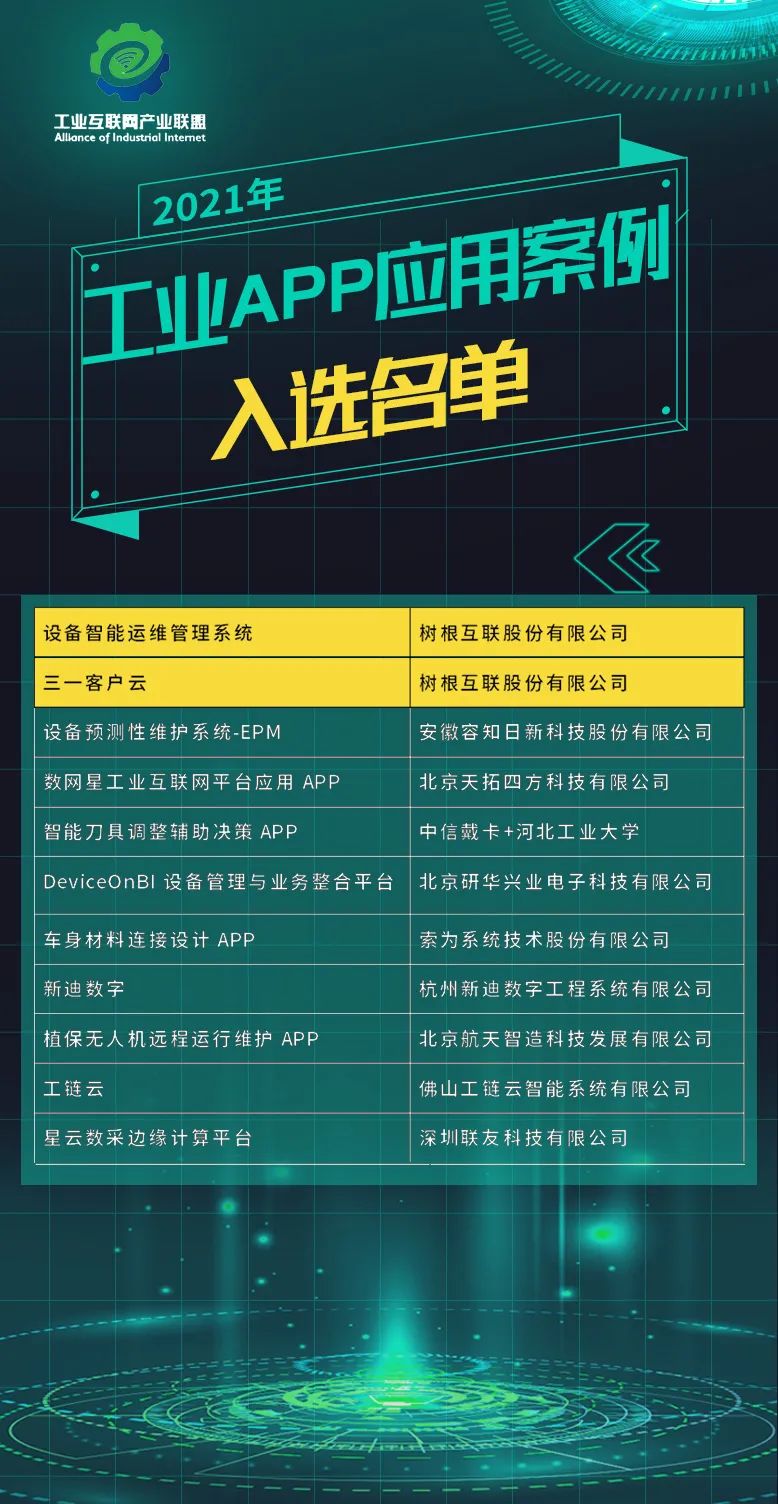 開門紅!樹根科技2個應用入選“2021工業APP應用案例名單”