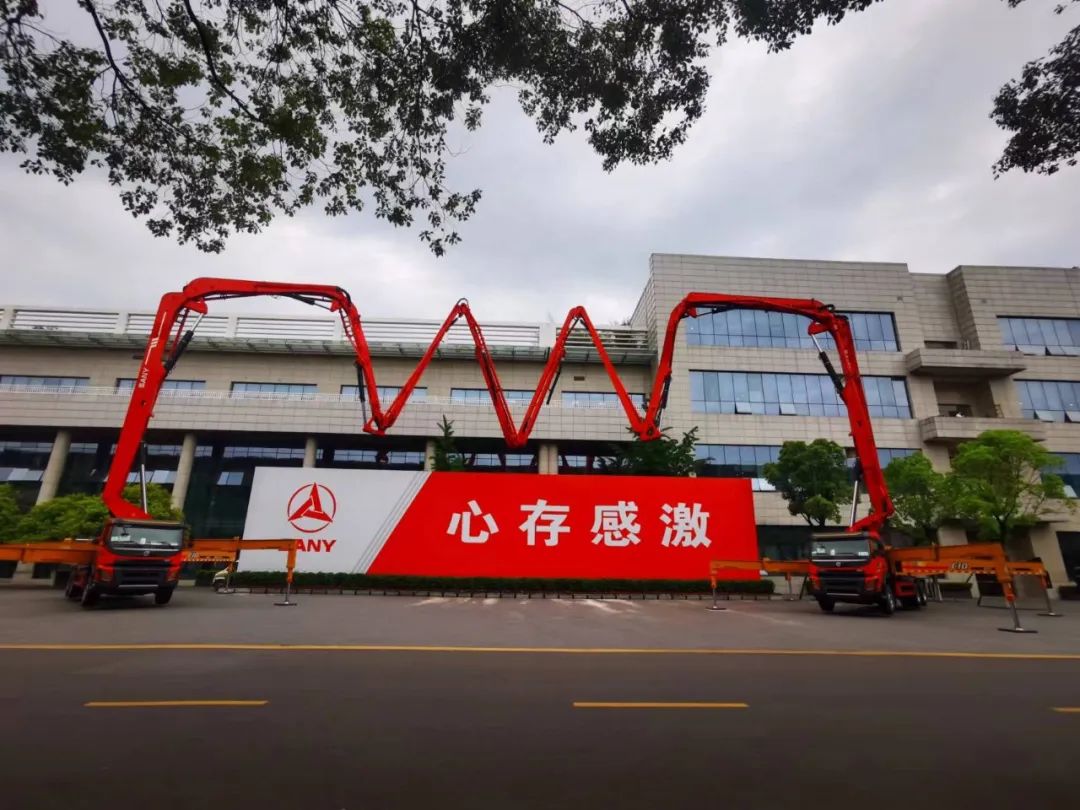 圖注:兩輛三一重工的泵車做了一個(gè)手勢;意思是“歡迎來訪”