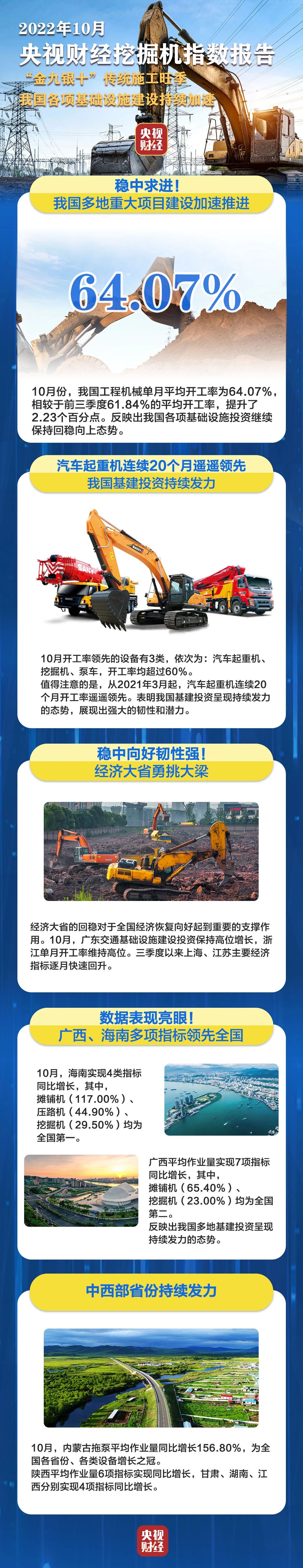 10月,海南實現(xiàn)4類指標(biāo)同比增長,其中,攤鋪機(117.00%)、壓路機(44.90%)、挖掘機(29.50%)均為全國第一。