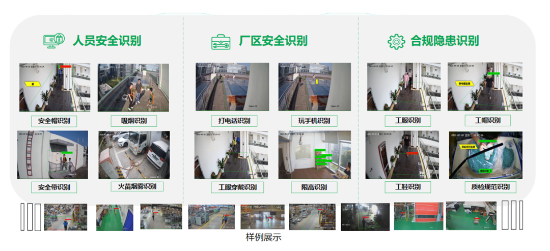4、提升員工生產效率:通過對人員脫崗、玩手機、人員聚集及對物流同道占用等為代表的行為實時監控分析,以及及時告警,將員工生產效率提升10~30%