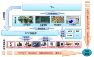 廠房建設(shè)有 PCC生產(chǎn)控制中心,通過(guò)對(duì)生產(chǎn)過(guò)程中物料、設(shè)備、輔助生產(chǎn)資源等數(shù)據(jù)采集,并集成PDM\ERP\CRM\MES等應(yīng)用系統(tǒng),實(shí)現(xiàn)訂單執(zhí)行與生產(chǎn)現(xiàn)場(chǎng)的集中管理與調(diào)度。核心業(yè)務(wù)包括生產(chǎn)計(jì)劃與執(zhí)行管控、質(zhì)量管控、物流管控,以及生產(chǎn)現(xiàn)場(chǎng)視頻監(jiān)控等。