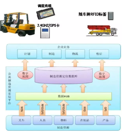 1) 通過(guò)物聯(lián)網(wǎng)技術(shù)實(shí)現(xiàn)對(duì)在制品、叉車(chē)、人員、設(shè)備資源的實(shí)時(shí)定位、追蹤與監(jiān)控;