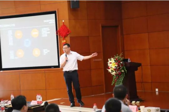 參觀結束后,樹根科技CEO賀東東為大家帶來了《工業互聯網賦能戰略與銷售策略》的精彩演講,通過從核心競爭力、差異化優勢、工業互聯網賦能戰略等方面為大家詳解根云的核心優勢與廣闊前景。